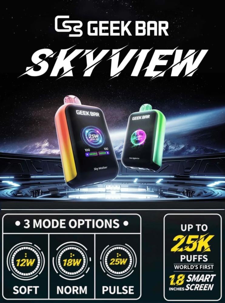 سحبة جيك بار 23000 شفطة 50 نيكوتين - Geekbar 23000 Puff مع شاشة عرض بدقة عالية وسعة نكهة 28 مل وبطارية بقوة 800 مللي امبير.