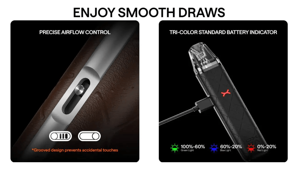 سحبة سيجارة اكسلم جو من اوكسفا - Xlim Go Oxva يتميز ببطارية 1000 مللي أمبير في الساعة، مزودة بمفتاح للتحكم في تدفق الهواء قابل للتعديل. يوفر XLIM GO أقصى اخراج يبلغ 30 واط، وهو بود مثالي لأولئك الذين يتنقلون أو يسافرون، حيث يكتشف تلقائيًا مقاومة البود المثبت ويستخدم القوة الكهربائية المناسبة تلقائياً.