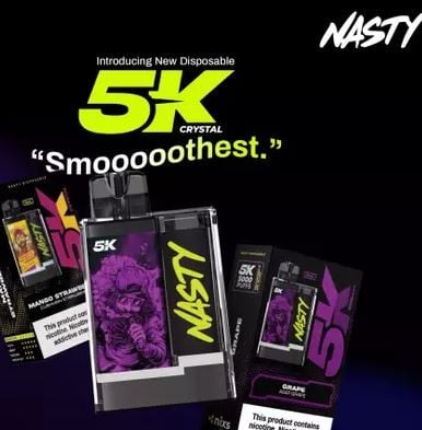 سحبة ناستي كريستال 5000 شفطة - Nasty Crystal 5K Puff تحوي على نكهات عديدة ذات طعم طازج وقابلة لإعادة الشحن مع مخرج شحن تايب سي.