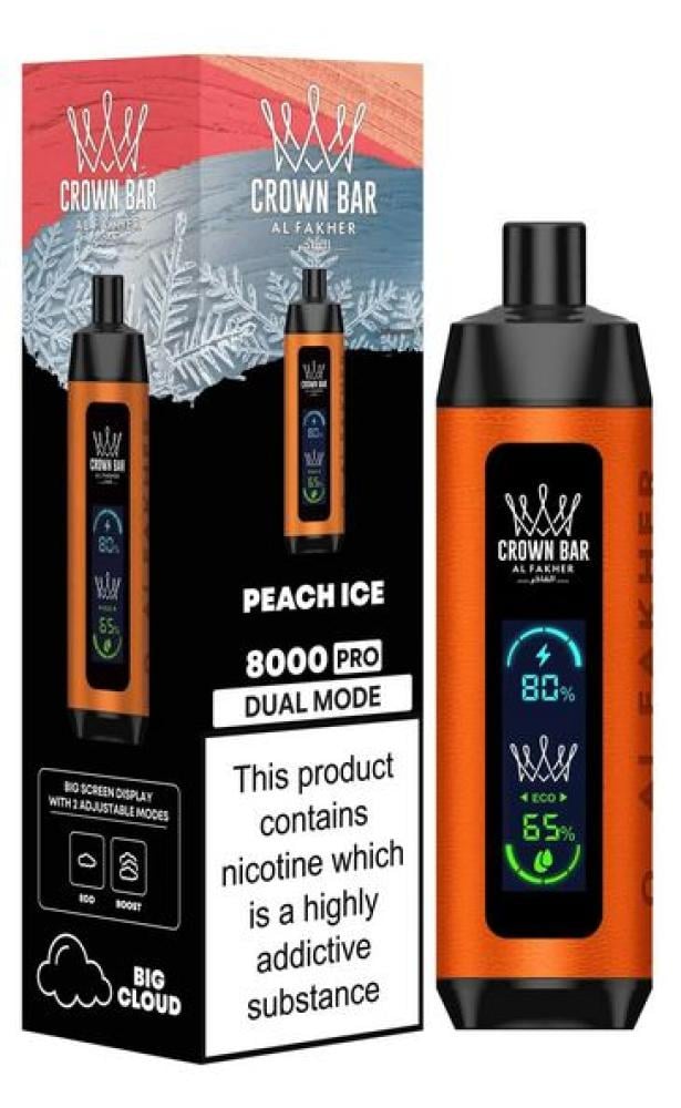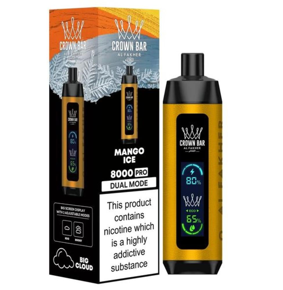 معسل كراون بار برو 8000 شفطة 5 نيكوتين - CrownBar pro Alfakher 8000 Puff بسعة 800 مللي امبير للبطارية القابلة لإعادة الشحن وسعة نكهة 18 مل.